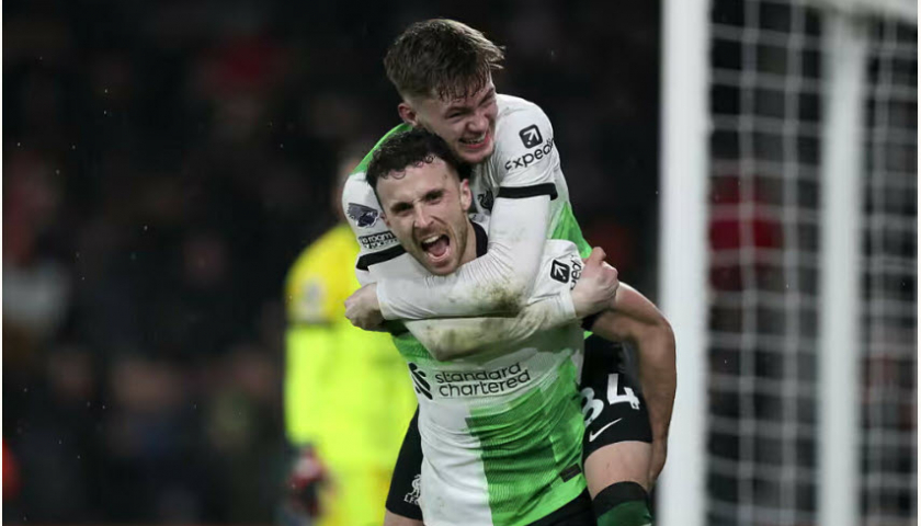 Thiếu Mohamed Salah vì giải châu Phi, hàng công Liverpool vẫn duy trì sức mạnh để thắng trận thứ năm liên tiếp trên mọi đấu trường. Dù Luis Diaz chơi dưới sức, hai tiền đạo còn lại lần lượt tỏa sáng trong hiệp hai khi ghi tới bốn bàn. Jota được chọn làm cầu thủ hay nhất trận khi anh góp công vào ba bàn thắng.