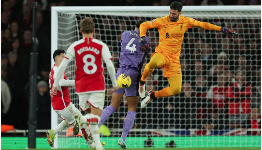Phút 67, khi tỷ số đang là 1-1, trung vệ Arsenal Gabriel Magalhaes phất bóng đến trước vòng cấm. Virgil van Dijk cản Gabriel Martinelli để Alisson băng ra giải nguy. Tuy nhiên, thủ thành Brazil phá trượt bóng, tạo điều kiện để Martinelli dứt điểm vào khung thành trống. Đến phút bù giờ thứ hai, Alisson khép góc không tốt, để Leandro Trossard dứt điểm qua hai chân, ấn định tỷ số 3-1 cho Arsenal.