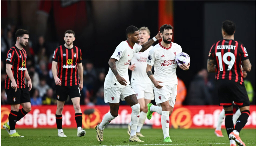 Sau giờ nghỉ, Ten Hag đưa Amad Diallo vào thay Garnacho. Nhưng điều chỉnh này không giúp Man Utd thay đổi. Bournemouth tiếp tục chơi chủ động và tạo nhiều cơ hội hơn. Tuy nhiên, may mắn một lần nữa giúp đội khách gỡ hòa. Lần này, họ được hưởng phạt đền sau khi cú đá của Kobbie Mainoo đập vào Christie rồi chạm tay Adam Smith. Trên chấm phạt đền, Fernandes đánh lừa thủ thành Neto, lần thứ hai gỡ hòa cho Man Utd. Đây là bàn thứ tư của tiền vệ 29 tuổi cho Man Utd trong ba trận gần nhất.