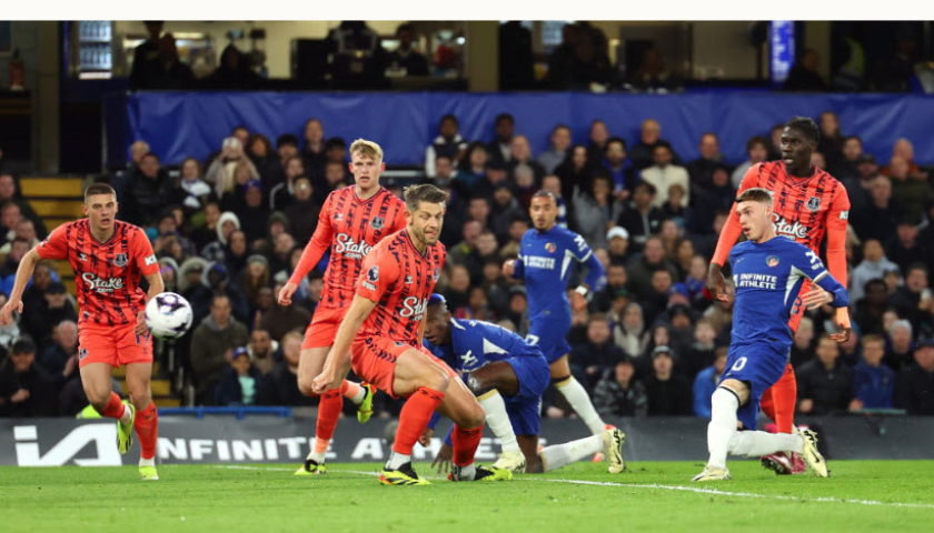 Nhưng tiền vệ 21 tuổi chưa dừng lại. Đầu hiệp hai, Chelsea được hưởng phạt đền khi Noni Madueke bị phạm lỗi trong vòng cấm. Trên chấm 11m, Palmer sút chìm về góc trái, ngược hướng phán đoán của thủ thành Everton.