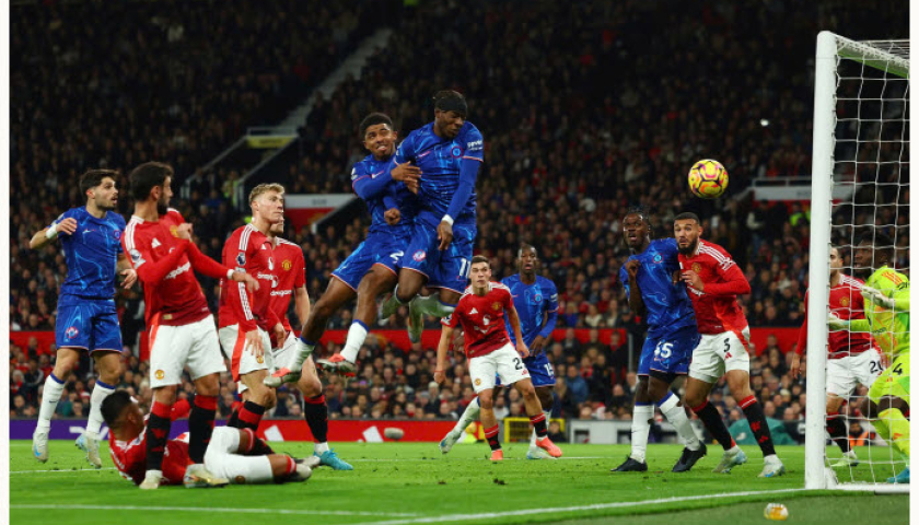Chelsea cũng dần chơi ổn định hơn dưới trướng HLV Enzo Maresca, và chính họ tạo ra cơ hội nguy hiểm đầu tiên với cú đánh đầu của Noni Madueke dội cột dọc ở phút 14. Cuối hiệp một, Man Utd đáp trả khi Fernandes treo bóng từ bên trái về cột hai cho Rashford đệm một chạm dội xà ngang bật ra ngoài.