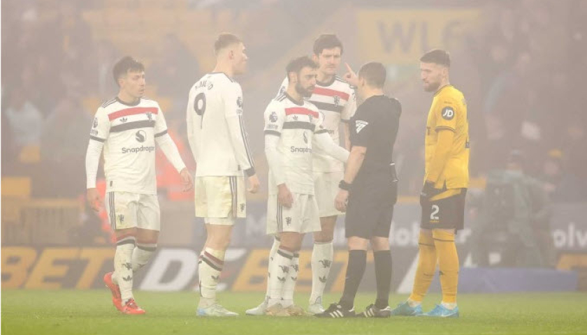 90 giây sau khi hiệp hai bắt đầu, Fernandes nhận thẻ vàng thứ hai khi giẫm vào chân Nelson Semedo. Trước đó ở hiệp một, đội trưởng Man Utd bị phạt thẻ vàng do phạm lỗi với Matheus Cunha. Rời sân sớm, tiền vệ Bồ Đào Nha trở thành cầu thủ Man Utd đầu tiên nhận ba thẻ đỏ trên mọi đấu trường trong một mùa giải, kể từ trường hợp của Nemanja Vidic mùa 2008-2009.
