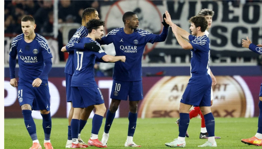Kể từ đó, đội khách kiểm soát hoàn toàn thế trận. Trong nửa đầu hiệp, PSG lên bóng chủ yếu ở cánh trái của Barcola, còn nửa sau là cánh phải của Dembele. Bộ đôi này làm tốt nhiệm vụ khuấy đảo, đồng thời đóng góp trực tiếp vào các bàn thắng của PSG.