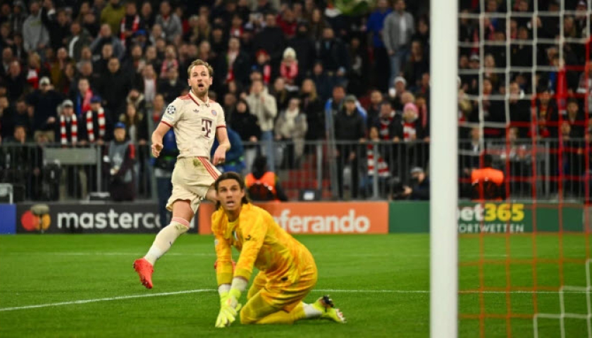 Phút 14, từ quả tạt bên cánh phải, tiền đạo 31 tuổi đánh đầu chéo góc bị thủ thành Yann Sommer bắt dính. Hơn 10 phút sau, Kane được Michael Olise "dọn cỗ". Nhưng từ cự ly chỉ 6 mét, thủ quân tuyển Anh đặt lòng chạm cột ra ngoài.