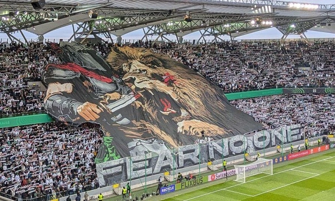 Khẩu hiệu và hình ảnh do CĐV Legia tạo ra trước trận đấu với Chelsea.