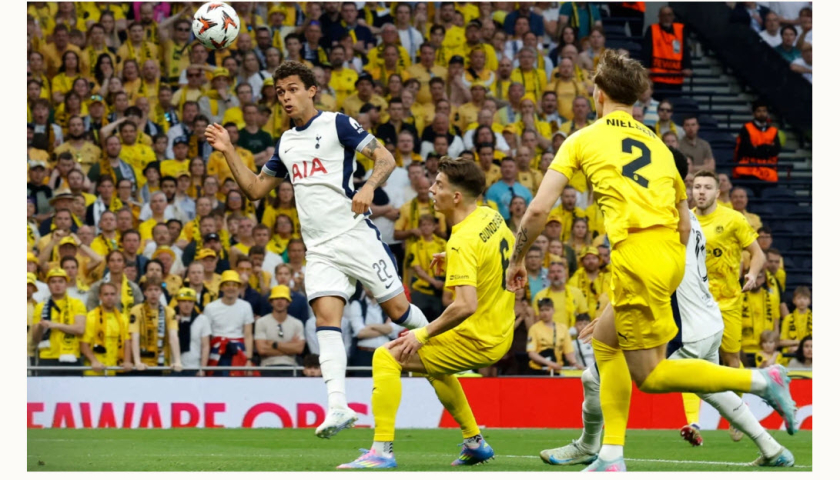 Điểm trừ trong màn trình diễn của Tottenham là không thể giữ sạch lưới. Phút 83, Ulrik Saltnes xoay xở trước vòng vây ba cầu thủ trong vòng cấm rồi sút chéo góc chạm chân Rodrigo Bentancur đi vào lưới.