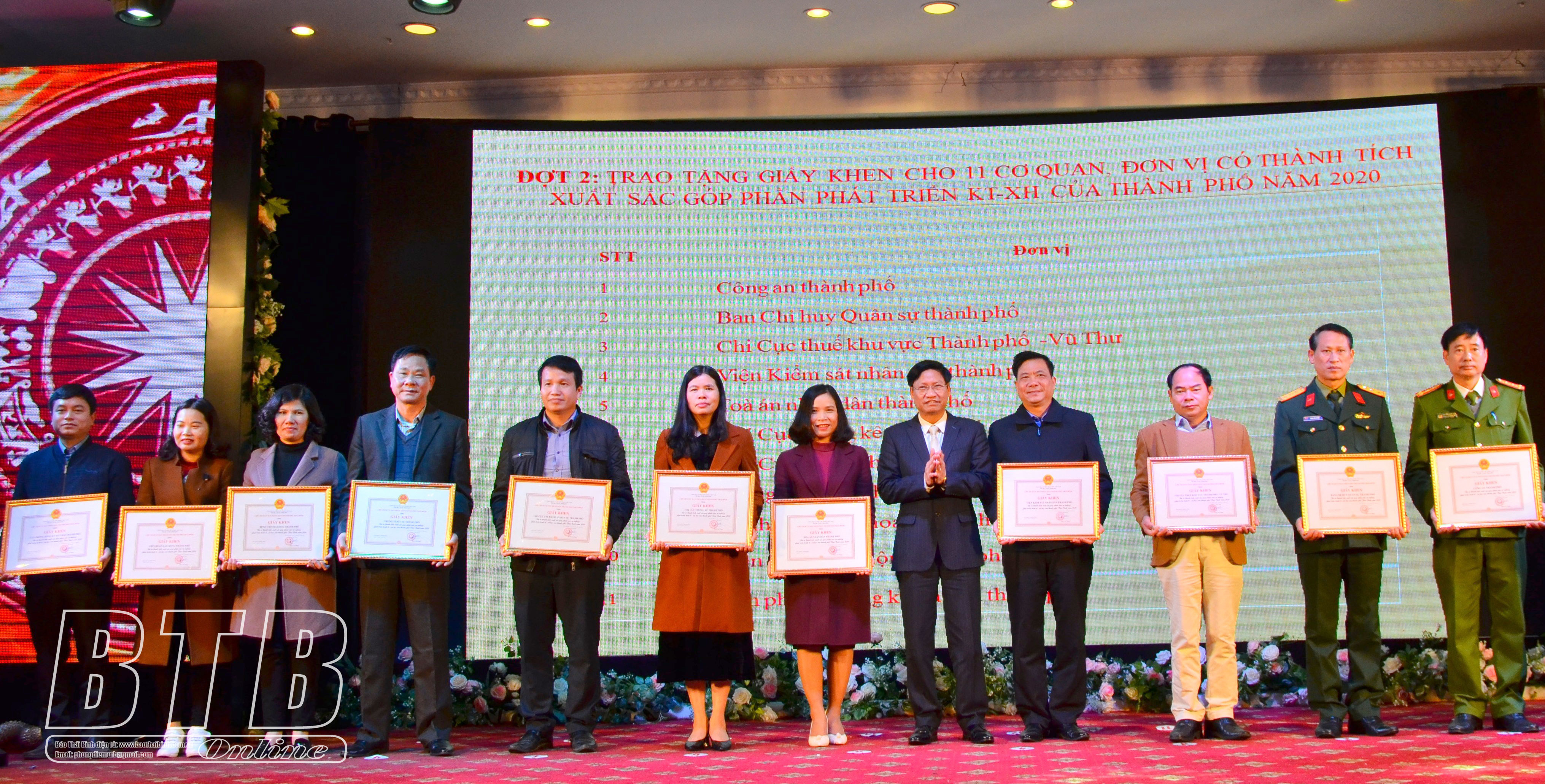 Nhân dịp này, UBND thành phố đã khen thưởng cho các tập thể, cá nhân, các doanh nghiệp có thành tích cao trong năm 2020.