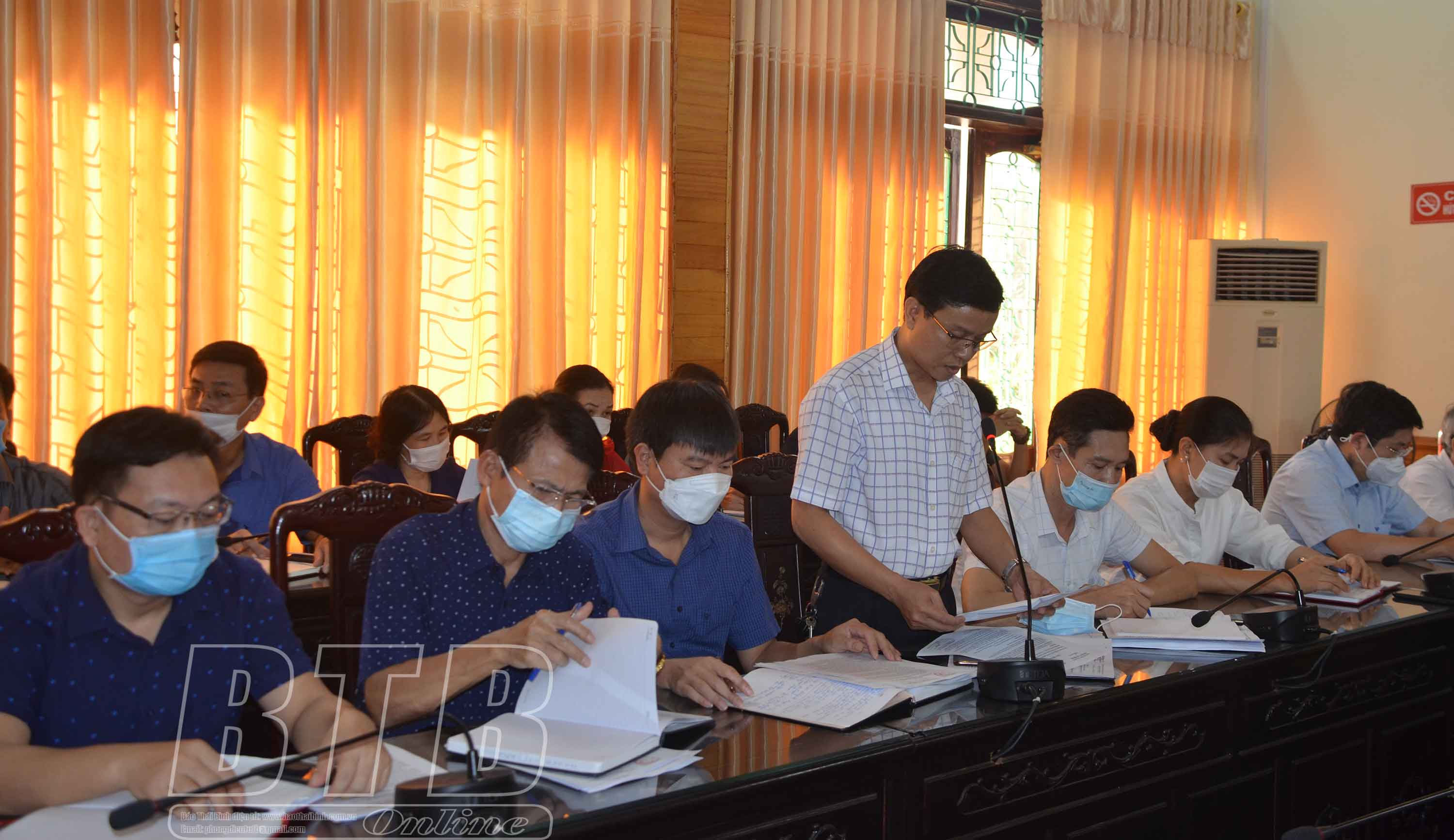 Đại diện các phòng, ban chuyên môn báo cáo tình hình phát triển kinh tế-xã hội 9 tháng đầu năm.