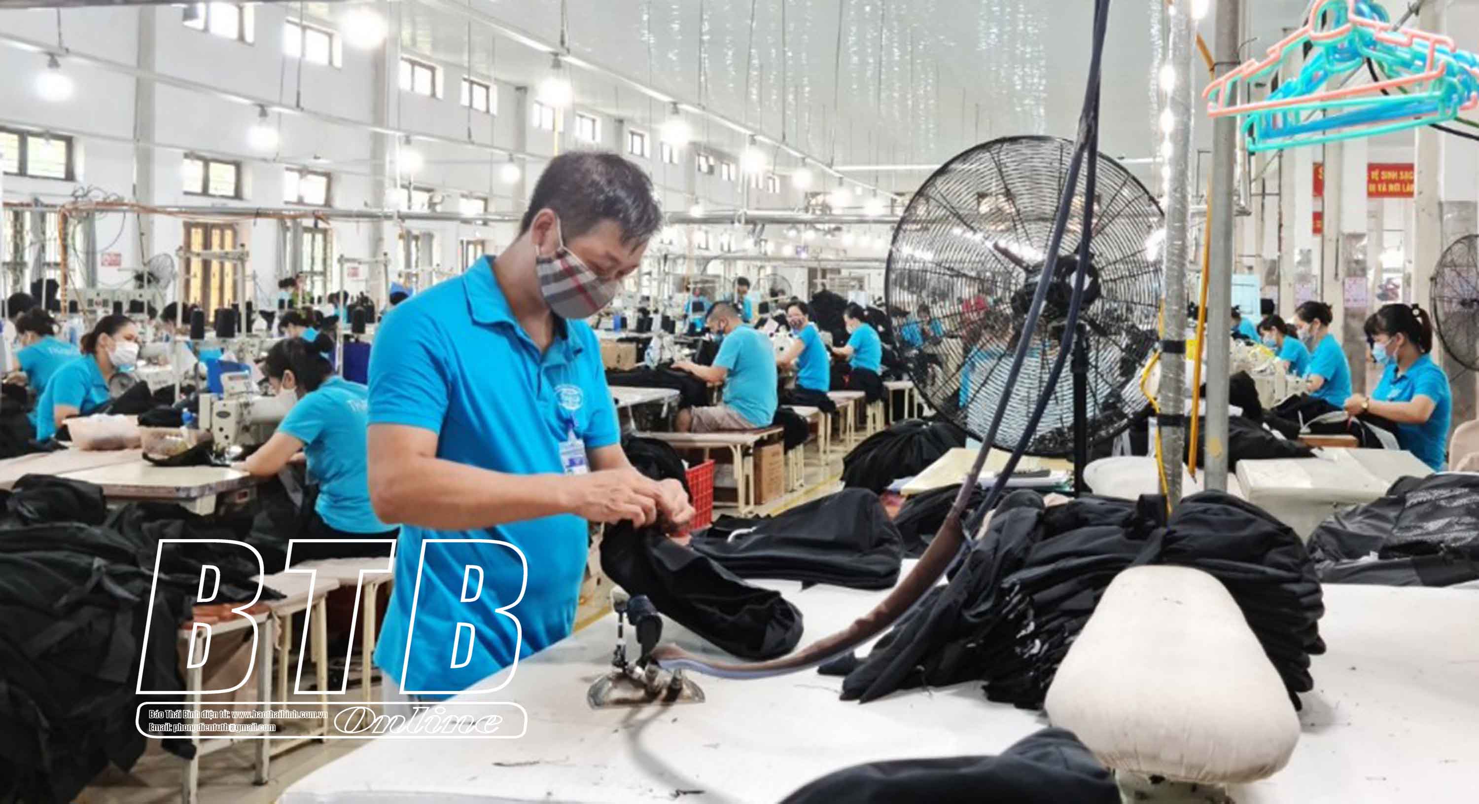 Công nghiệp thành phố tiếp tục phục hồi và tăng trưởng. Trong ảnh: Dây chuyền sản xuất của Công ty Cổ phần May xuất khẩu Thái Bình.