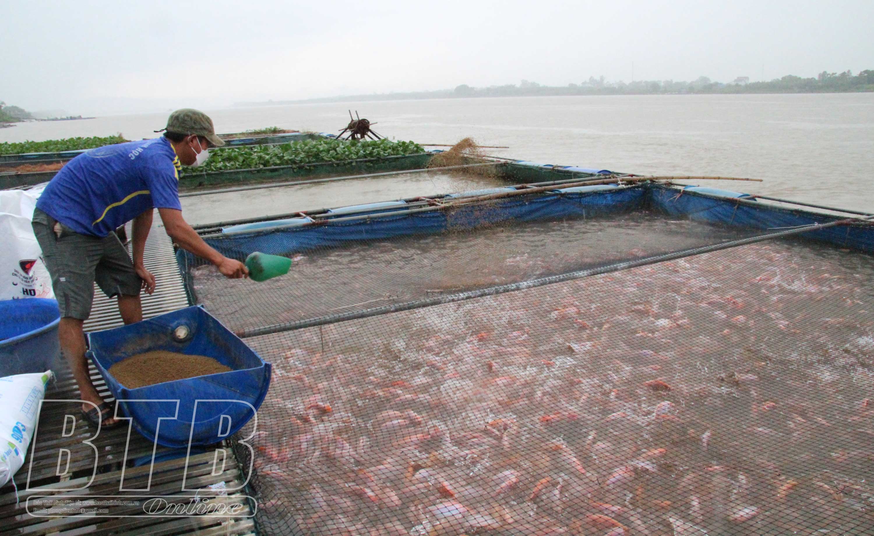 Nuôi cá lồng tại Hưng Hà.