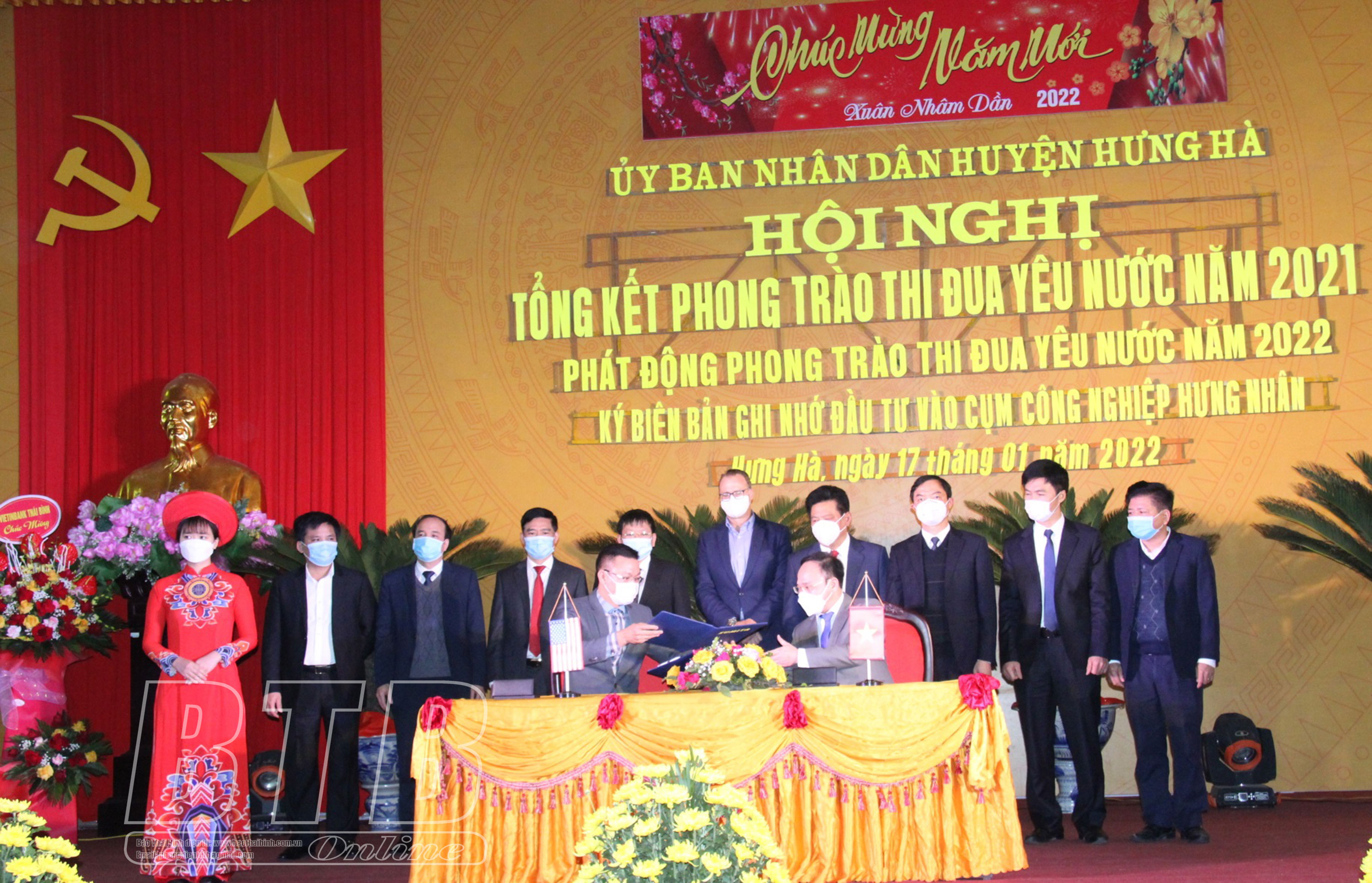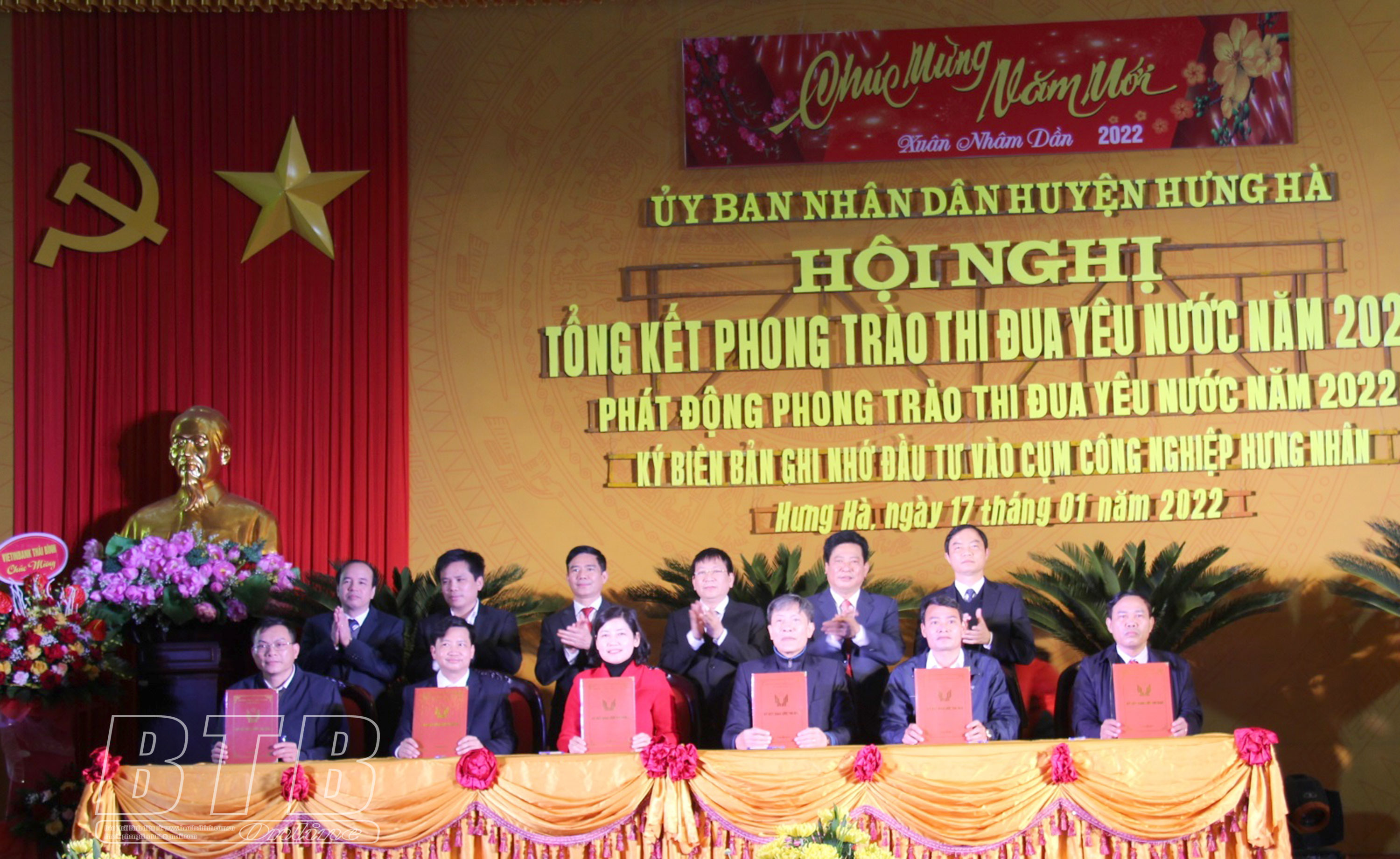 Nhân dịp này, lãnh đạo Huyện ủy, HĐND, UBND huyện Hưng Hà đã chứng kiến lễ ký biên bản ghi nhớ đầu tư vào cụm công nghiệp Hưng Nhân giữa nhà đầu tư hạ tầng với nhà đầu tư thứ cấp.
