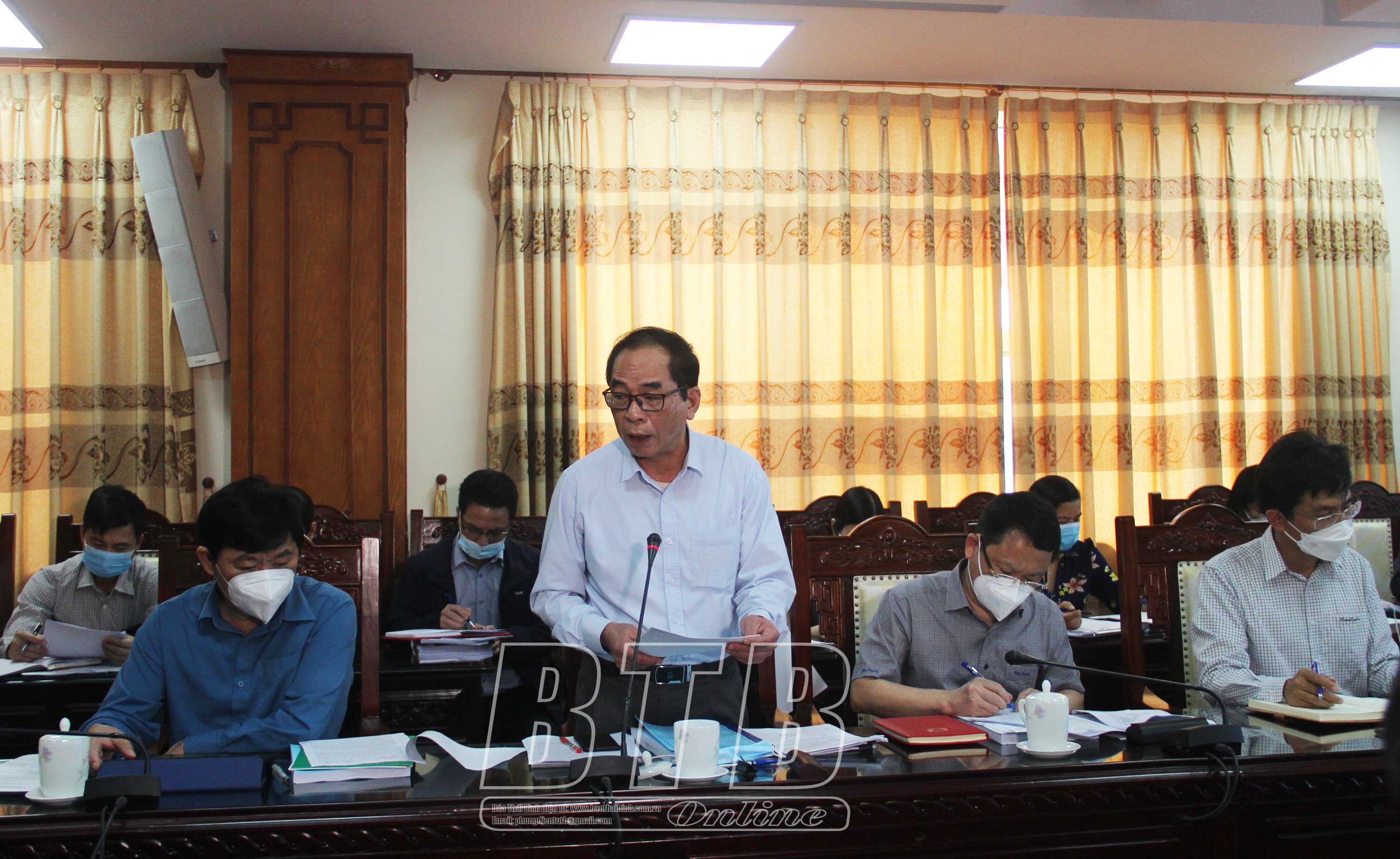 Đồng chí Lại Văn Hoàn, Tỉnh ủy viên, Phó Chủ tịch UBND tỉnh phát biểu tại cuộc họp.