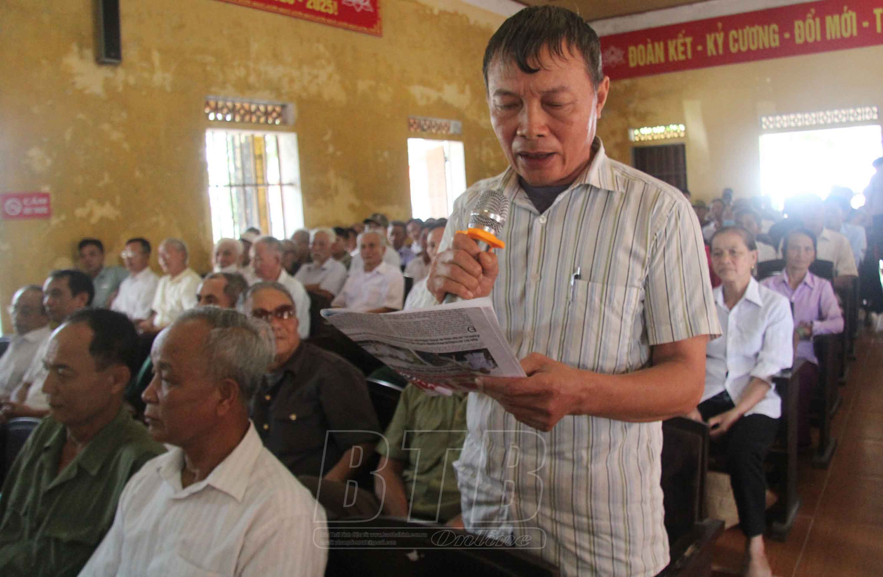Người dân thôn Đồng Phú, xã Đông Đô kiến nghị tại buổi đối thoại.