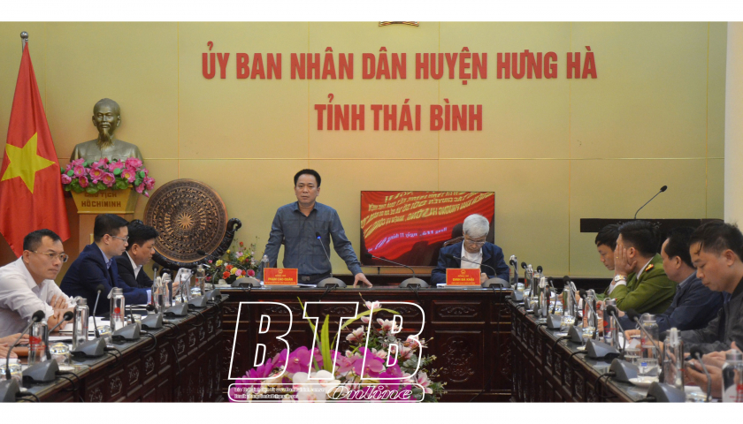 Lãnh đạo huyện Hưng Hà phát biểu tại hội nghị.