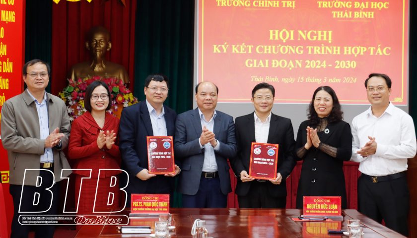 Việc ký kết chương trình hợp tác giữa Trường Chính trị tỉnh Thái Bình với Trường Đại học Thái Bình nhằm nâng cao hiệu quả thực hiện các nhiệm vụ được giao và phát triển bền vững theo yêu cầu của tỉnh.