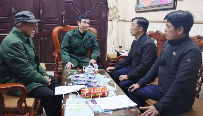 Cán bộ từ xã tới thôn của xã Chương Dương (Đông Hưng) trực tiếp tới các hộ gia đình tuyên truyền về chủ trương sáp nhập đơn vị hành chính cấp xã và ngày lấy ý kiến cử tri.