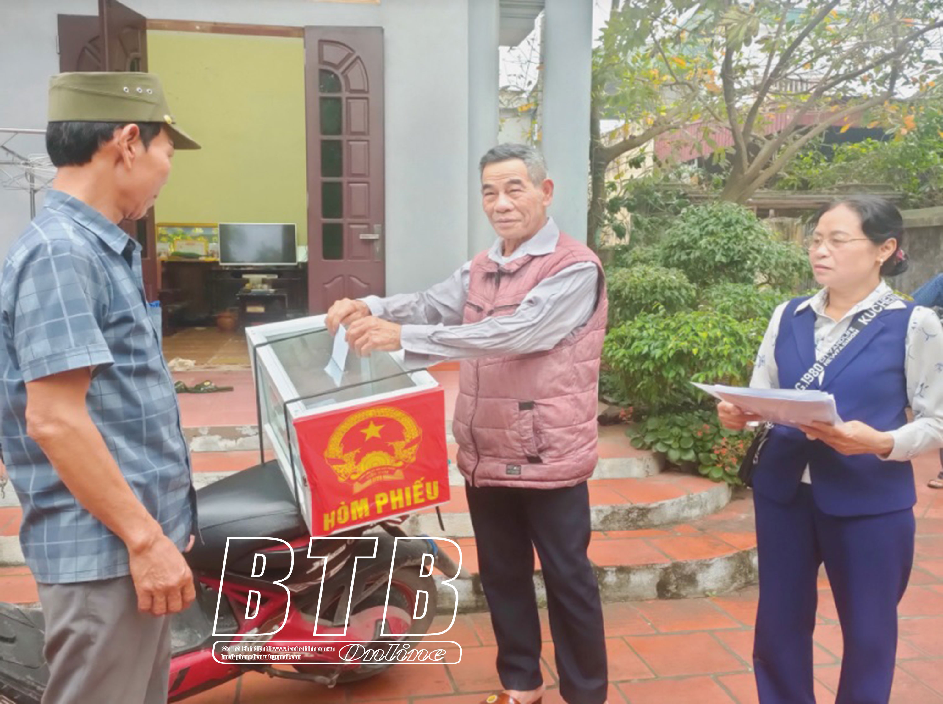 Tổ chức lấy phiếu cử tri tại xã Dân Chủ (Hưng Hà). Ảnh: Thanh Thủy