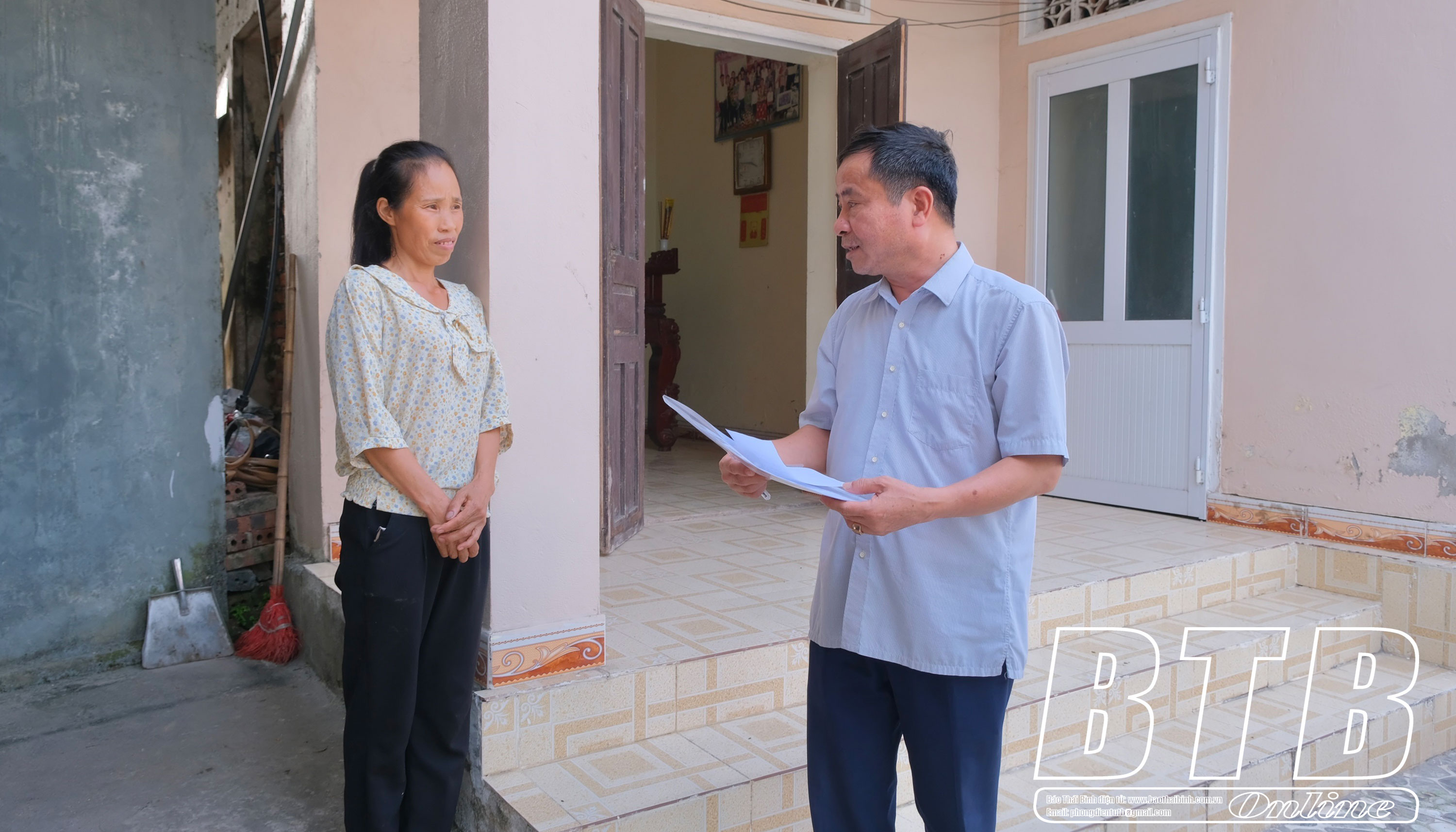 Đại diện đoàn giám sát của Ủy ban MTTQ tỉnh kiểm tra, đánh giá việc bình xét hộ nghèo, hộ cận nghèo trên địa bàn xã Quỳnh Giao.