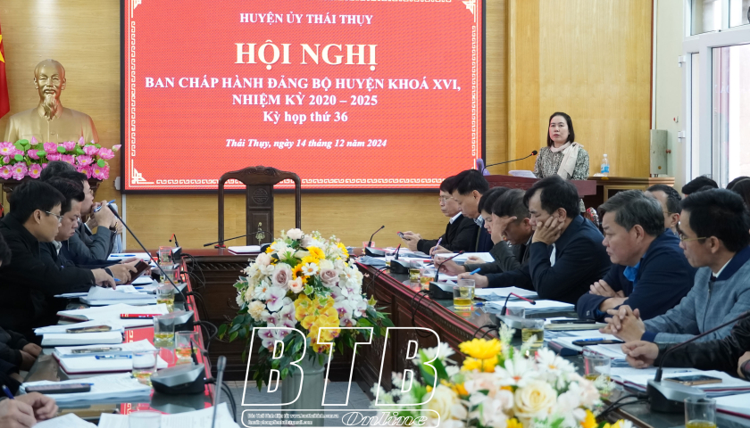 Năm 2024, Ban Chấp hành Đảng bộ huyện Thái Thụy tập trung lãnh đạo, chỉ đạo thực hiện hiệu quả các nhiệm vụ phát triển kinh tế - xã hội. Trong năm, công tác xây dựng Đảng và hệ thống chính trị tiếp tục được thực hiện đồng bộ, có nhiều đổi mới; xây dựng chi bộ kiểu mẫu được quan tâm chú trọng; công tác dân vận thực hiện hiệu quả; Uỷ ban kiểm tra hai cấp thực hiện 65/65 cuộc kiểm tra đối với 200 tổ chức đảng, 12 đảng viên, giám sát 42/44 cuộc đối với 36 tổ chức đảng, 68 đảng viên; công tác nội chính và phòng, chống tham nhũng, tiêu cực, cải cách tư pháp thực hiện nghiêm túc. Hoạt động của MTTQ và các đoàn thể chính trị - xã hội tiếp tục được nâng lên. Năm 2024, huyện đạt tổng giá trị sản xuất 35.737 tỷ đồng, tăng 9,4% so với năm 2023; tổng thu ngân sách nhà nước ước thực hiện 2.512 tỷ đồng, đạt 150,9% dự toán. Công tác giải phóng mặt bằng tiếp tục quan tâm chỉ đạo thực hiện, như dự án trọng điểm khu công nghiệp Liên Hà Thái, tuyến đường trục kết nối Khu kinh tế, dự án đầu tư xây dựng và kinh doanh kết cấu hạ tầng khu công nghiệp VSIP, tuyến đường bộ cao tốc Ninh Bình - Hải Phòng…