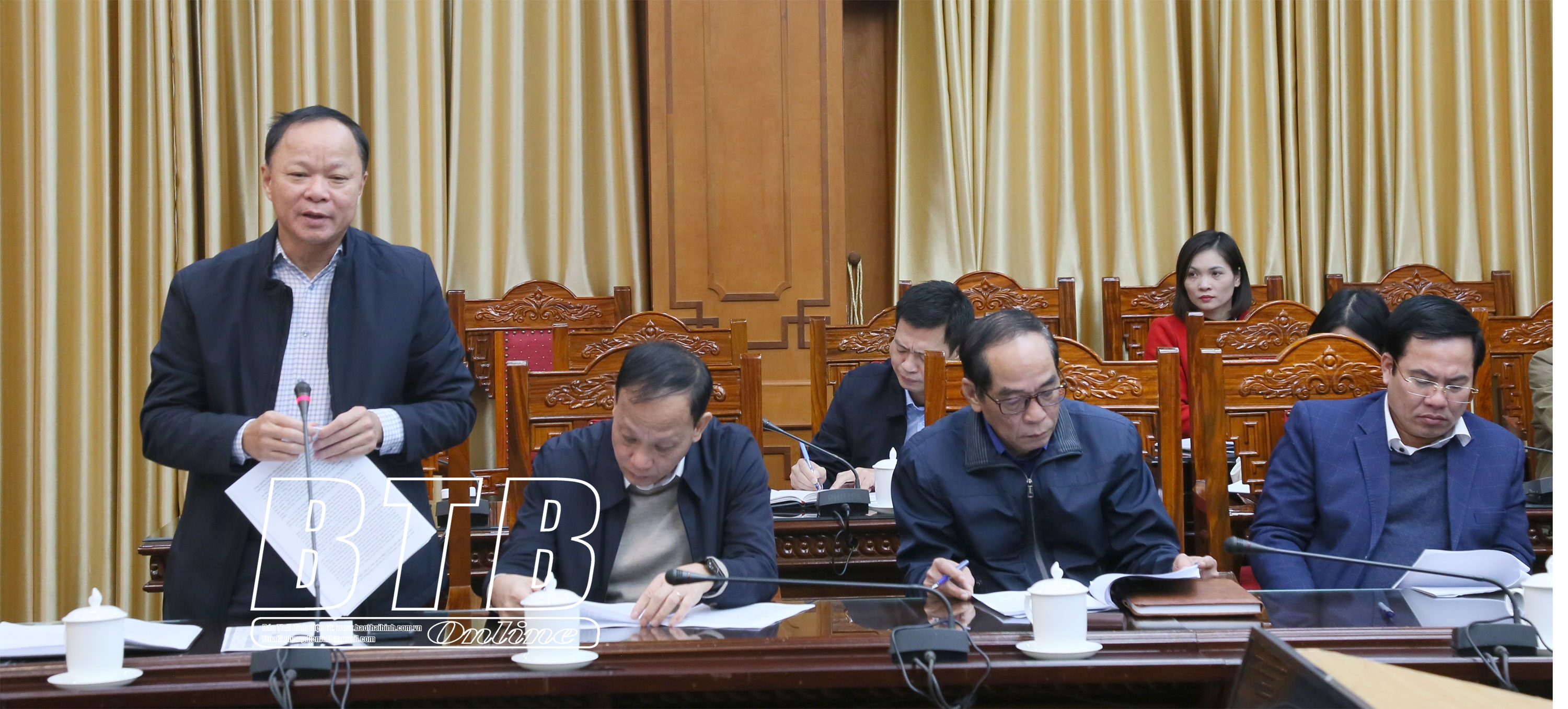 Đồng chí Lại Văn Hoàn, Tỉnh ủy viên, Phó Chủ tịch UBND tỉnh phát biểu tại cuộc họp.
