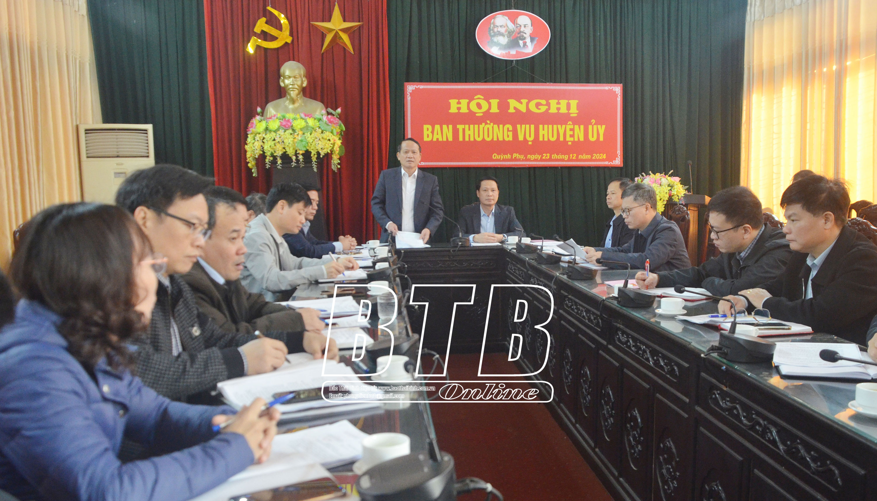 Năm 2025 là năm cuối của nhiệm kỳ, đồng chí đề nghị tập thể Ban Thường vụ Huyện ủy Quỳnh Phụ phát huy tinh thần đoàn kết, tổ chức thành công đại hội đảng bộ cơ sở tiến tới Đại hội Đảng bộ huyện lần thứ XVII, nhiệm kỳ 2025 - 2030; luôn đổi mới, sáng tạo trong mọi hoạt động, tìm giải pháp khắc phục khó khăn, hạn chế; tập trung lãnh đạo, chỉ đạo để thực hiện thắng lợi các nhiệm vụ đề ra.