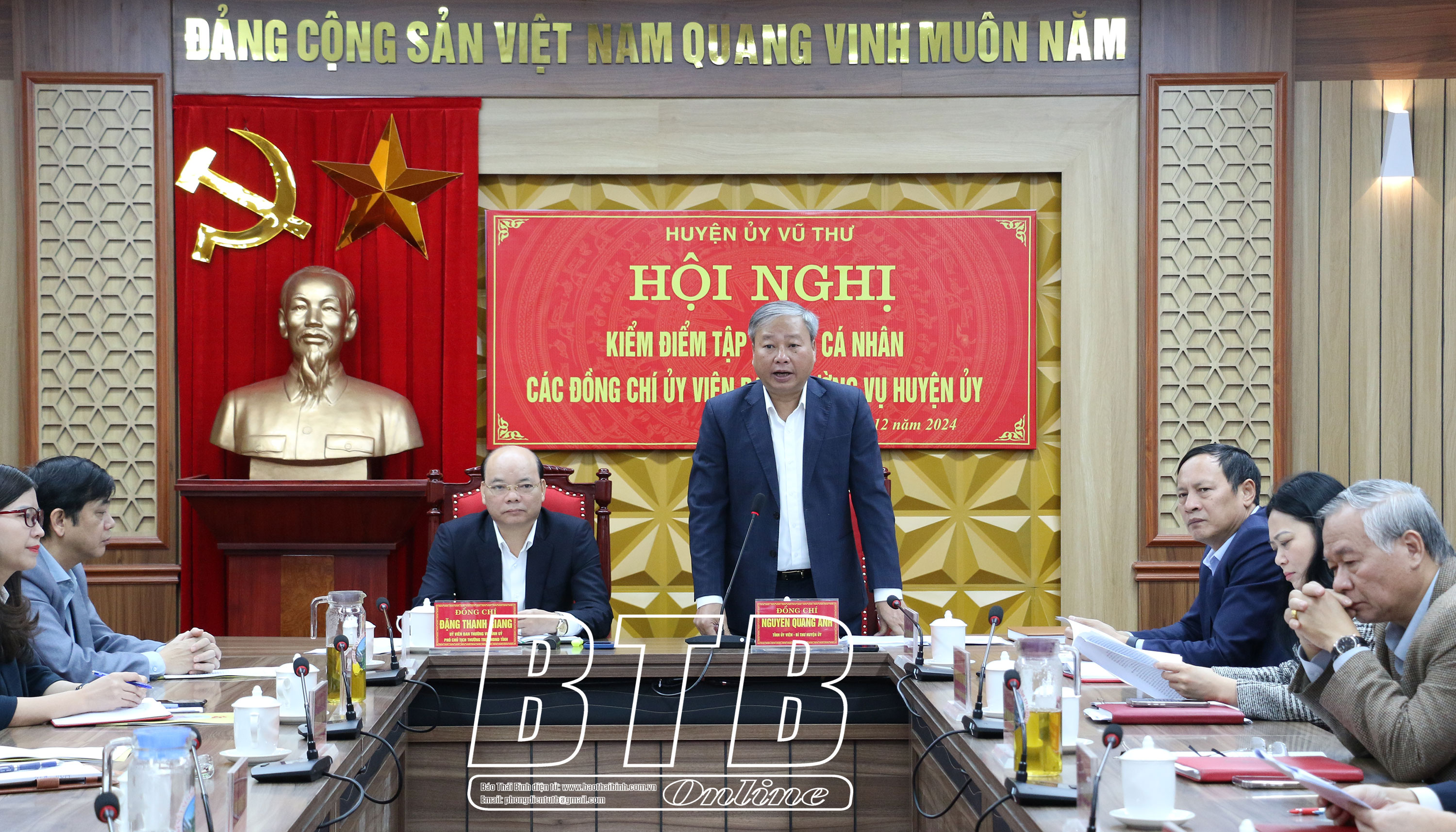 Phát biểu tại hội nghị, đồng chí Phó Chủ tịch thường trực HĐND tỉnh ghi nhận, biểu dương tinh thần kiểm điểm nghiêm túc của tập thể Ban Thường vụ Huyện ủy Vũ Thư; đề nghị thời gian tới Ban Thường vụ Huyện ủy tập trung khắc phục những khuyết điểm, hạn chế đã được chỉ ra, đồng thời có biện pháp lãnh đạo, chỉ đạo thực hiện thắng lợi các mục tiêu, chỉ tiêu, nhiệm vụ năm 2025 và của cả nhiệm kỳ. Tập trung lãnh đạo, chỉ đạo tổ chức thành công đại hội đảng bộ các cấp.