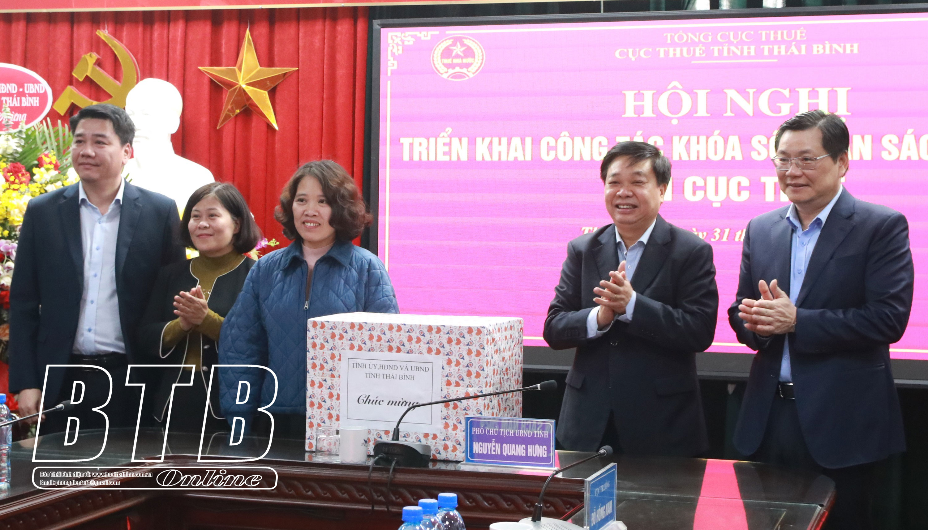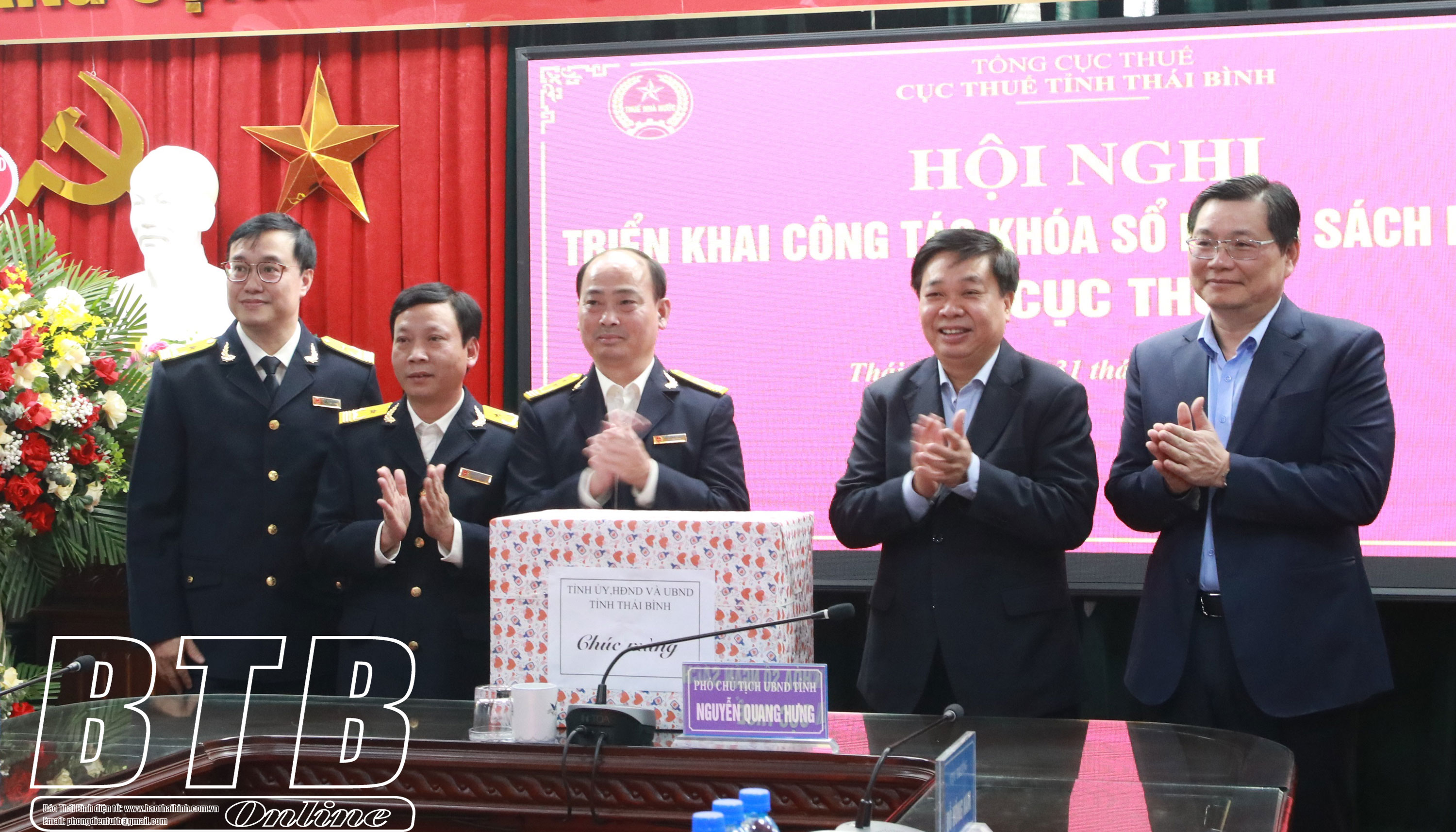 Đồng chí Nguyễn Quang Hưng, Ủy viên Ban Thường vụ Tỉnh ủy, Phó Chủ tịch thường trực UBND tỉnh thăm, động viên, tặng quà cán bộ, công nhân viên Cục Thuế tỉnh.