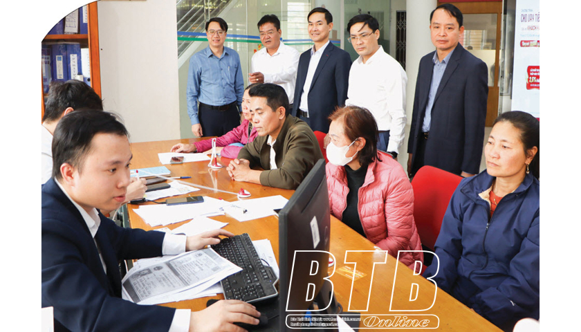 Các đồng chí lãnh đạo huyện Kiến Xương kiểm tra, động viên công tác khóa sổ năm 2024 tại Ngân hàng Nông nghiệp và Phát triển nông thôn huyện.