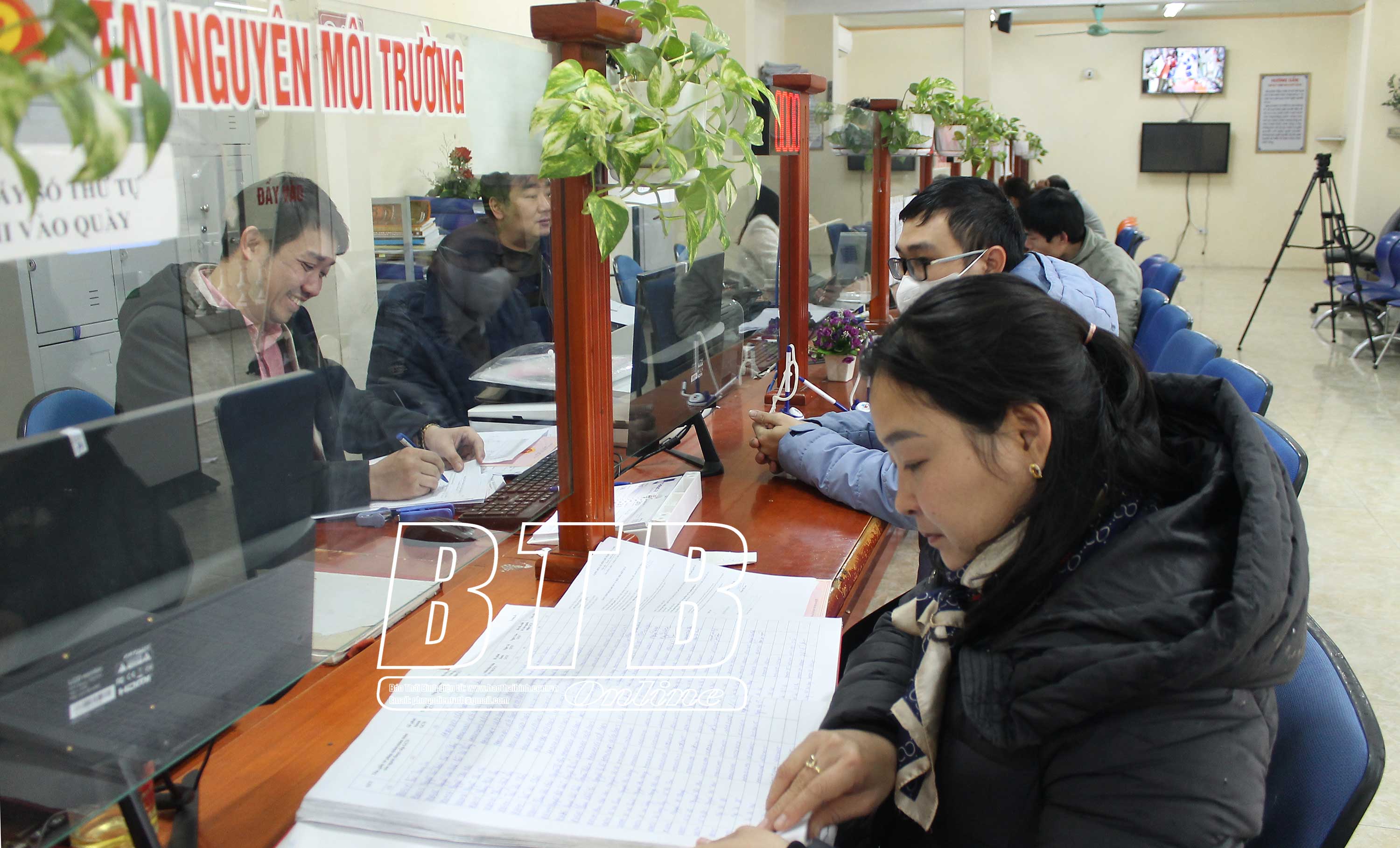 Sau khi hợp nhất, sáp nhập, thành lập mới, các cơ quan chuyên môn thuộc UBND huyện Quỳnh Phụ nhanh chóng ổn định tổ chức, duy trì hoạt động thông suốt. Trong ảnh: Người dân Quỳnh Phụ thực hiện các thủ tục hành chính tại Bộ phận tiếp nhận và trả kết quả huyện