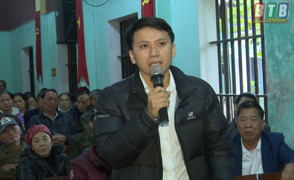 Đồng chí Nguyễn Cao Song, Tỉnh uỷ viên, Bí thư Huyện uỷ Kiến Xương trả lời, làm rõ ý kiến, kiến nghị của người dân.