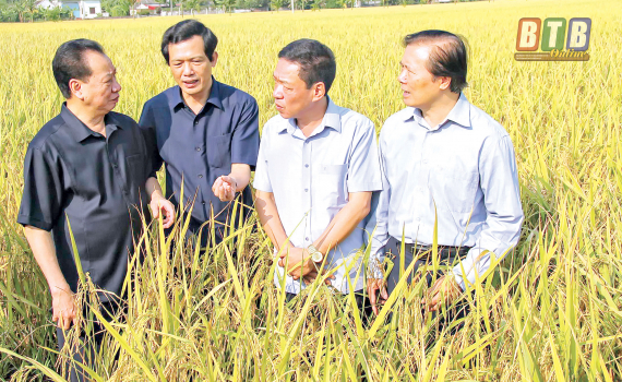 Đồng chí Nguyễn Hồng Chuyên, Ủy viên Ban Thường vụ, Trưởng ban Tuyên giáo Tỉnh ủy cùng các thành viên Hội đồng Lý luận Trung ương trong một chuyến thực tế tại xã Đông Phương (Đông Hưng).