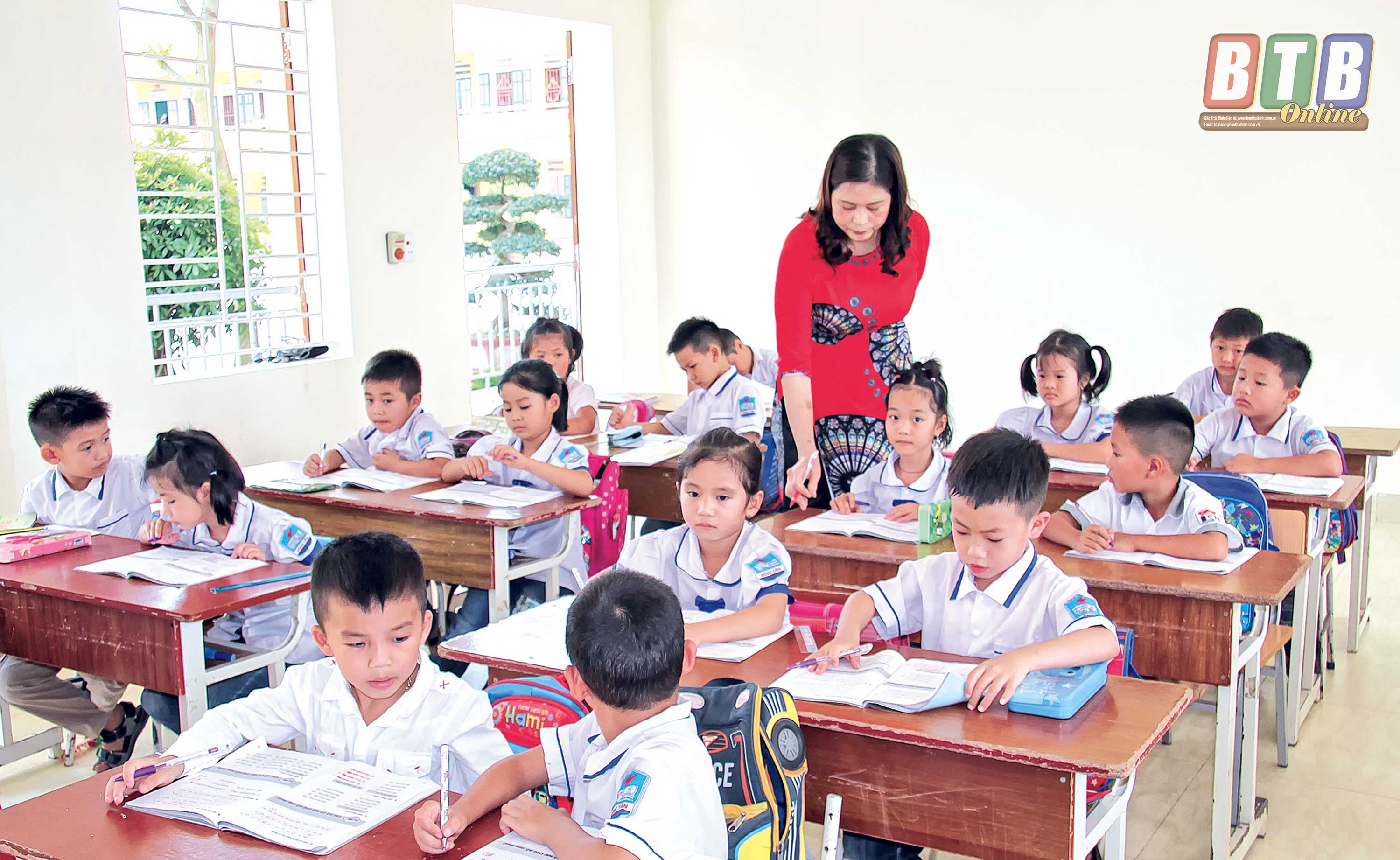 Giờ học của cô và trò Trường Tiểu học và THCS Đông Tân.