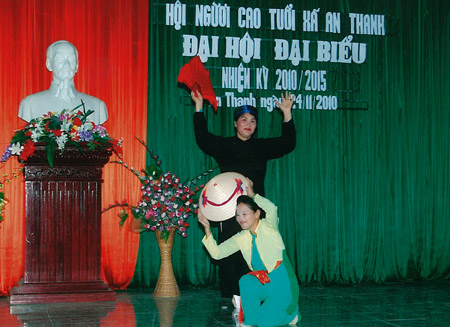 Bà Đào Thị Tái (mặc áo đen) biểu diễn văn nghệ chào mừng Đại hội Hội NCT xã An Thanh
