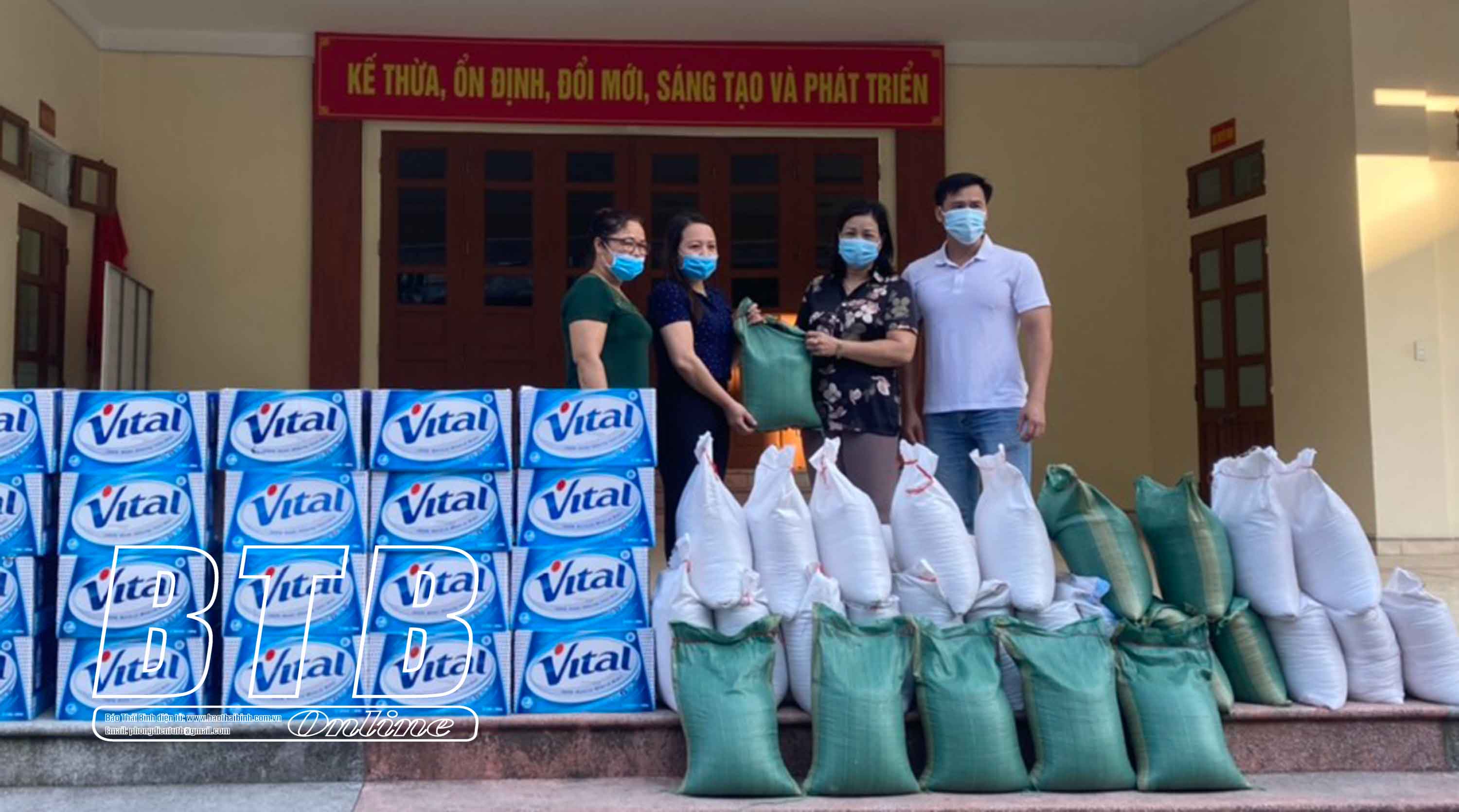 Hội LHPN thành phố Thái Bình và nhà tài trợ chuyển nhu yếu phẩm đến cấp ủy, chính quyền, MTTQ, Hội LHPN phường Kỳ Bá. Ảnh tư liệu