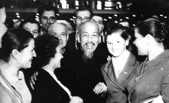 Chủ tịch Hồ Chí Minh với đại biểu Liên Xô và quốc tế tham dự Đại hội lần thứ 22 Đảng Cộng sản Liên Xô, diễn ra tại Moskva, tháng 10/1961. (Ảnh: Tư liệu TTXVN).