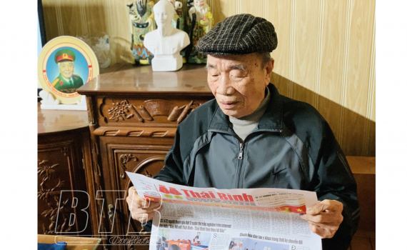 Ông Phạm Văn Lẫm thường xuyên đọc Báo Thái Bình để cập nhật tin tức.