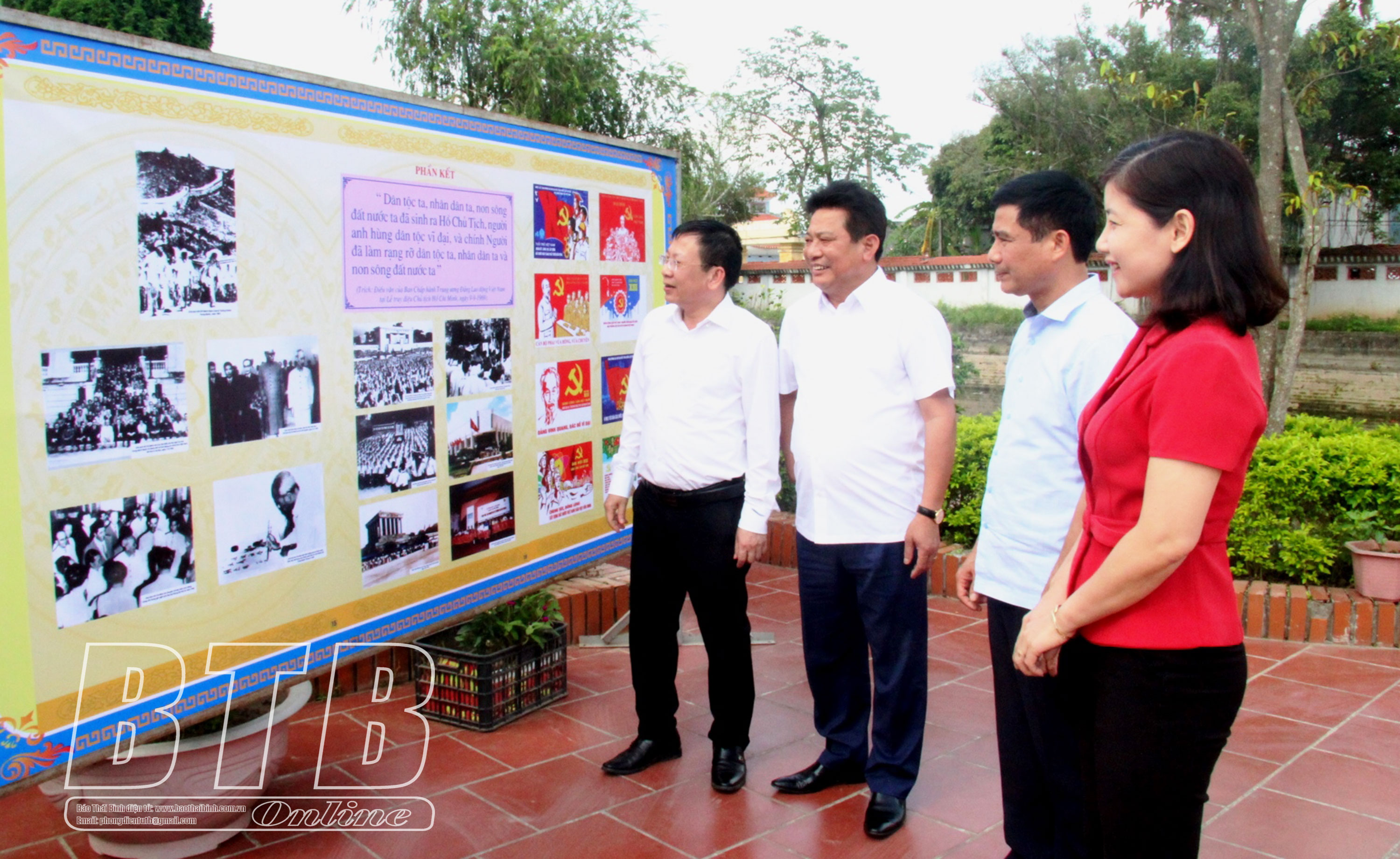 Các đồng chí lãnh đạo huyện Hưng Hà thăm khu trưng bày ảnh Bác Hồ tại Đền thờ Bác Hồ (xã Hồng An).