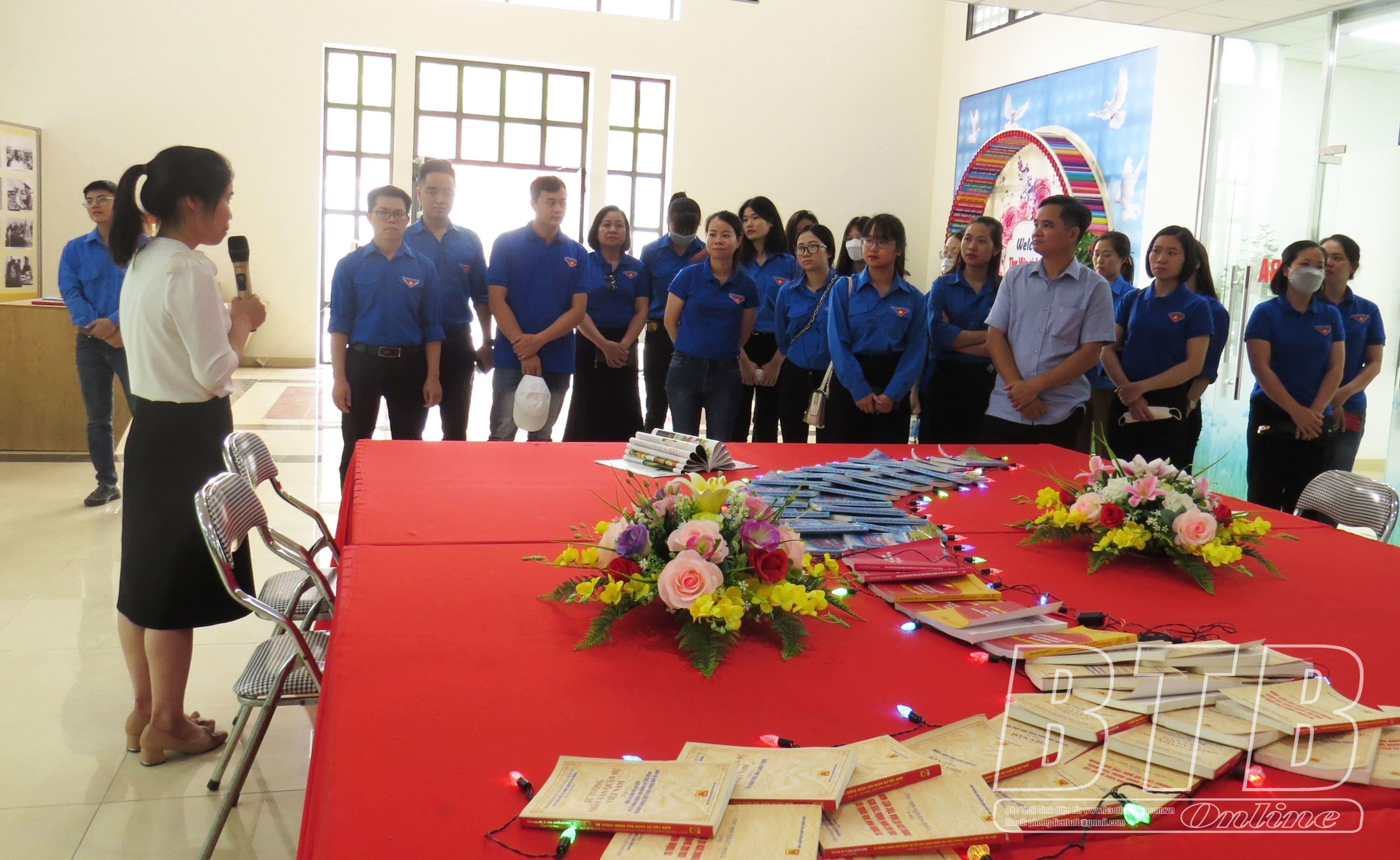 Tham quan Thư viện tỉnh, các đoàn viên, thanh niên được xem phóng sự tuyên truyền giới thiệu sách “Bác Hồ với Thái Bình, Thái Bình làm theo lời Bác” và tìm hiểu tư liệu hình ảnh quý về Bác.