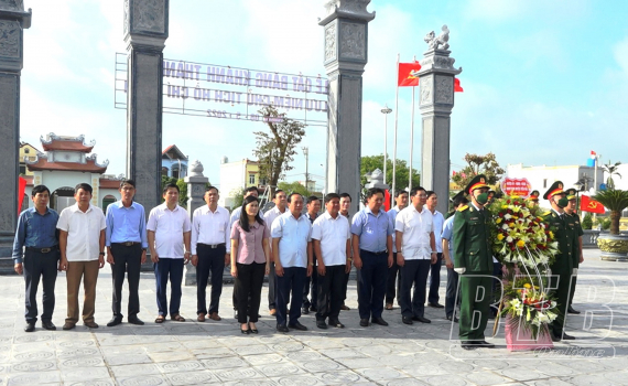 Các đại biểu huyện Tiền Hải dâng hoa, hương tưởng nhớ Chủ tịch Hồ Chí Minh tại Khu lưu niệm xã Nam Cường.