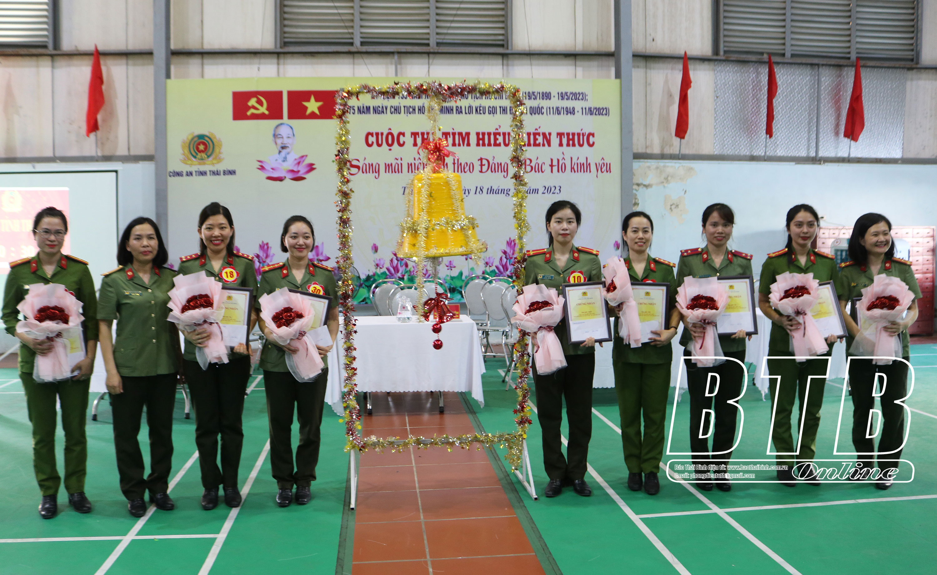 Thông qua hình thức sân khấu hóa rung chuông vàng, 48 thí sinh là nữ cán bộ, chiến sĩ đến từ các đơn vị, công an huyện, thành phố đã tham gia trả lời các câu hỏi với chủ đề: Sáu điều Bác Hồ dạy Công an nhân dân; Bác Hồ với Thái Bình; Kết luận số 21 của Ban Chấp hành Trung ương về đẩy mạnh xây dựng, chỉnh đốn Đảng và hệ thống chính trị; kiên quyết ngăn chặn, đẩy lùi, xử lý nghiêm cán bộ, đảng viên suy thoái về tư tưởng chính trị, đạo đức, lối sống, biểu hiện "tự diễn biến", "tự chuyển hóa"; Nghị quyết số 12 của Bộ Chính trị về xây dựng lực lượng công an nhân dân thật sự trong sạch, vững mạnh, chính quy, tinh nhuệ, hiện đại, đáp ứng yêu cầu, nhiệm vụ trong tình hình mới; bài phát biểu của Tổng Bí thư Nguyễn Phú Trọng tại Hội nghị cán bộ toàn quốc về công tác xây dựng, chỉnh đốn Đảng; nội dung của phong trào thi đua “Phụ nữ Công an nhân dân bản lĩnh nhân văn, chủ động, trách nhiệm, kỷ cương, sáng tạo vì an ninh Tổ quốc, vì hạnh phúc gia đình”...