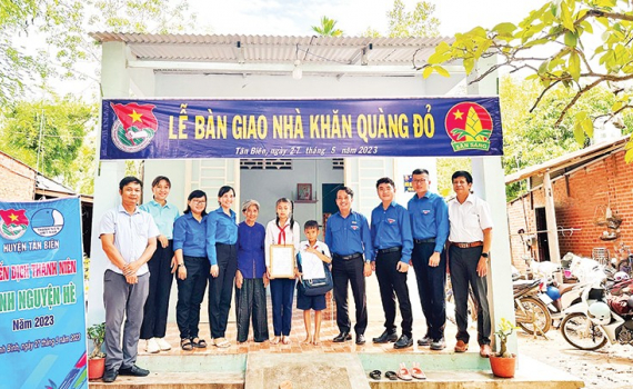 Huyện đoàn Tân Biên (Tây Ninh) bàn giao nhà Khăn quàng đỏ tặng gia đình học sinh nghèo.