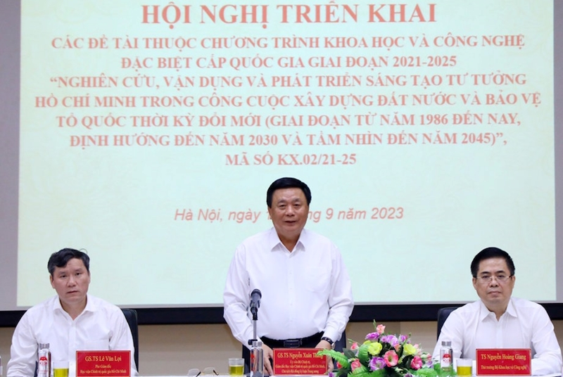 Đó là phát biểu của GS.TS Nguyễn Xuân Thắng, Ủy viên Bộ Chính trị, Giám đốc Học viện Chính trị quốc gia Hồ Chí Minh, Chủ tịch Hội đồng Lý luận Trung ương, Chủ nhiệm Chương trình tại Hội nghị triển khai các đề tài thuộc Chương trình Khoa học và công nghệ đặc biệt cấp quốc gia giai đoạn 2021-2025 “Nghiên cứu, vận dụng và phát triển sáng tạo tư tưởng Hồ Chí Minh trong công cuộc xây dựng đất nước và bảo vệ Tổ quốc thời kỳ đổi mới (giai đoạn từ 1986 đến nay, định hướng đến năm 2030 và tầm nhìn đến 2045)” do Học viện Chính trị quốc gia Hồ Chí Minh tổ chức ngày 11/9 tại Hà Nội.