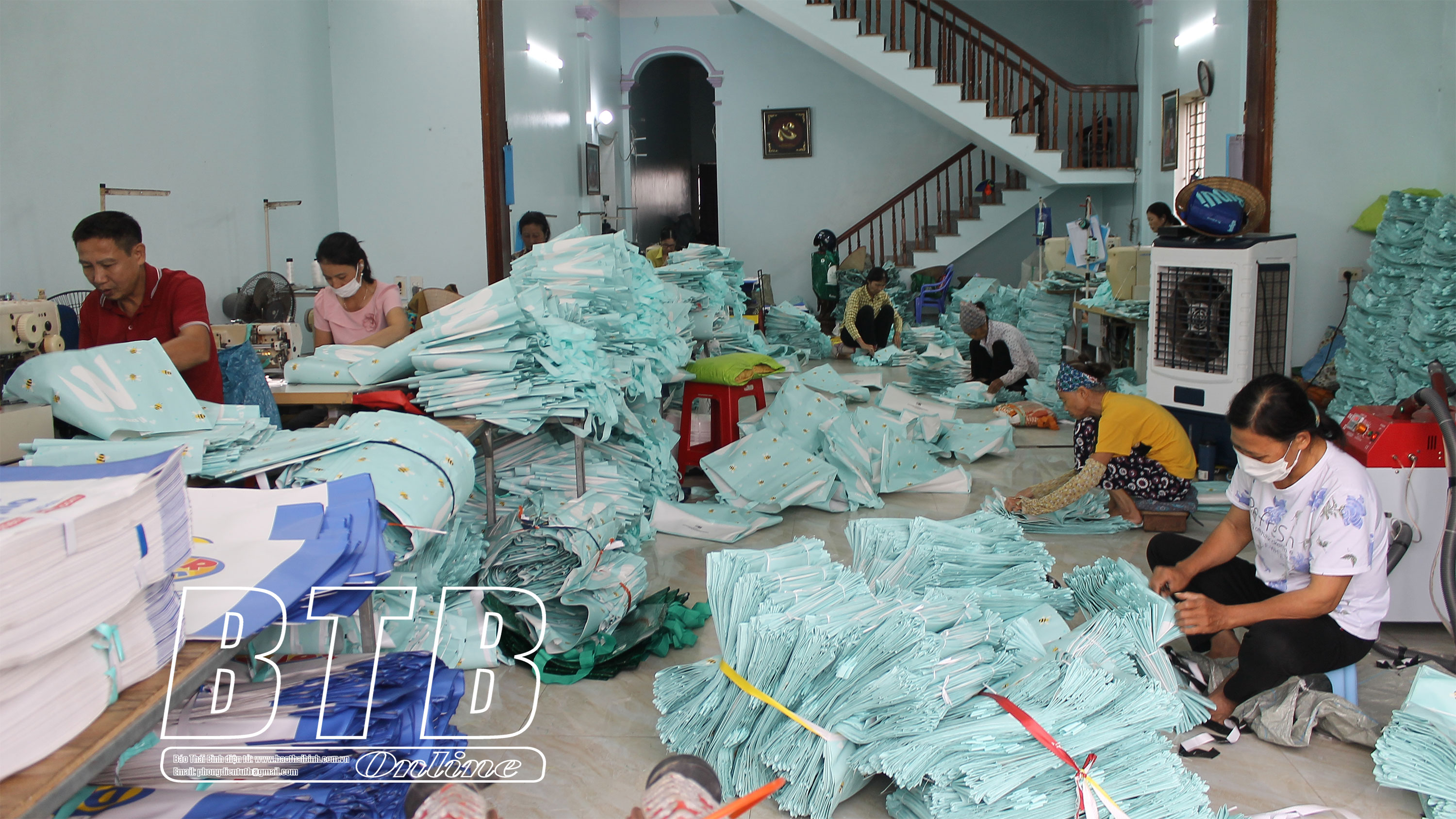 Cơ sở sản xuất, kinh doanh bao bì, túi nilon xuất khẩu của gia đình chị Nguyễn Thị Mái, thôn Vân Đài, xã Chí Hòa tạo việc làm cho gần 30 lao động.