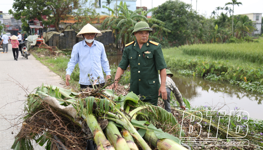 Hội Cựu chiến binh xã Thụy Duyên gương mẫu thực hiện công tác vệ sinh môi trường.