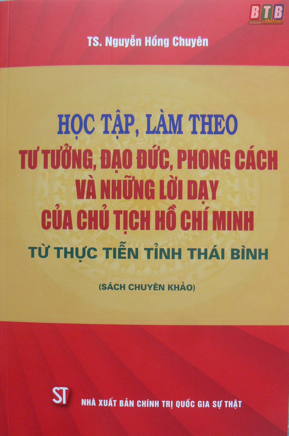 Hưởng ứng, đẩy mạnh phong trào thi đua đó, Nhà xuất bản Chính trị quốc gia Sự Thật vừa xuất bản cuốn sách Học tập và làm theo tư tưởng, đạo đức, phong cách và những lời dạy của Chủ tịch Hồ Chí Minh – Từ thực tiễn tỉnh Thái Bình của tác giả Tiến sỹ Nguyễn Hồng Chuyên, Ủy viên Ban Thường vụ Tỉnh ủy, Trưởng Ban Tuyên giáo Tỉnh ủy Thái Bình.