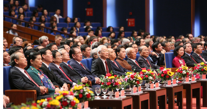 Tham dự Lễ kỷ niệm có các đồng chí: Tổng Bí thư, Chủ tịch nước Nguyễn Phú Trọng; nguyên Tổng Bí thư Nông Đức Mạnh; nguyên Chủ tịch nước Trần Đức Lương; Thủ tướng Chính phủ Nguyễn Xuân Phúc; Chủ tịch Quốc hội Nguyễn Thị Kim Ngân; nguyên Chủ tịch Quốc hội Nguyễn Văn An, nguyên Chủ tịch Quốc hội Nguyễn Sinh Hùng; Bí thư Trung ương Đảng, Chủ tịch Ủy ban Trung ương Mặt trận Tổ quốc Việt Nam Trần Thanh Mẫn; Ủy viên Bộ Chính trị, Bí thư Thành ủy, Trưởng đoàn đại biểu Quốc hội thành phố Hà Nội Hoàng Trung Hải.