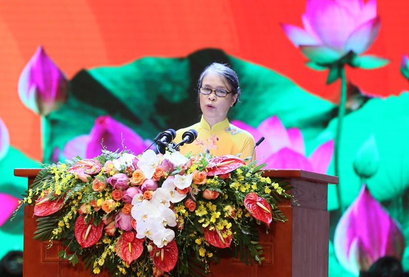 Phát biểu của Tiến sĩ Hoàng Thị Nữ, nguyên cán bộ Bảo tàng Hồ Chí Minh - đại diện gương tiêu biểu học tập và làm theo tư tưởng, đạo đức, phong cách Hồ Chí Minh.