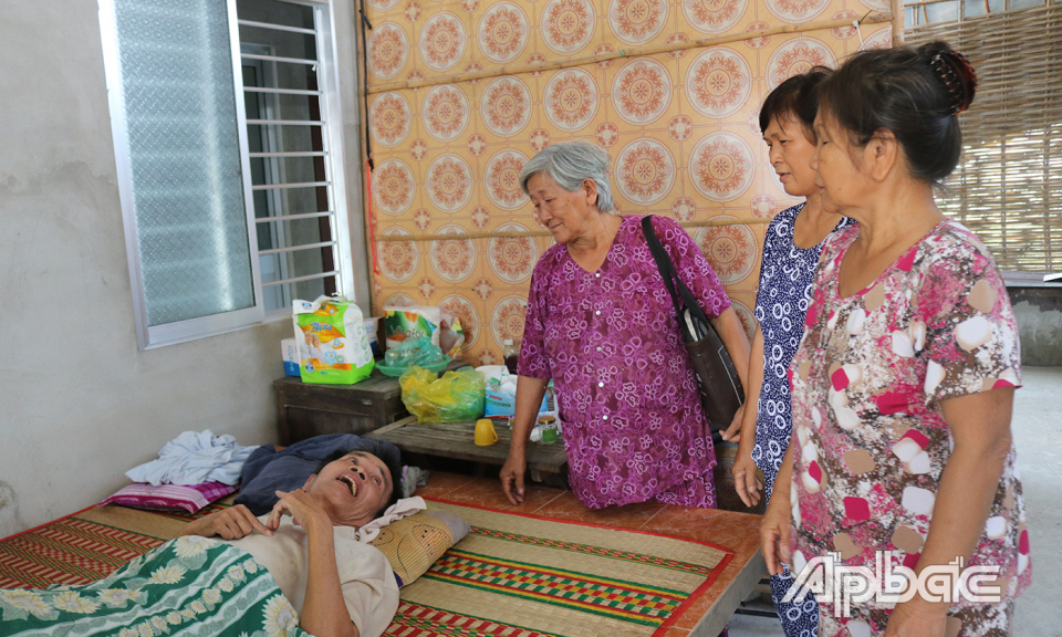 Ở ấp 3, xã Mỹ Thành Bắc (huyện Cai Lậy), từ nhiều năm qua, bà Bùi Thị Anh, Chi hội trưởng Chi hội Phụ nữ ấp (đã bước sang tuổi 75, bị căn bệnh suy giãn tĩnh mạch) vẫn miệt mài kết nối những tấm lòng hảo tâm với những cảnh đời nghèo khó, bệnh tật.