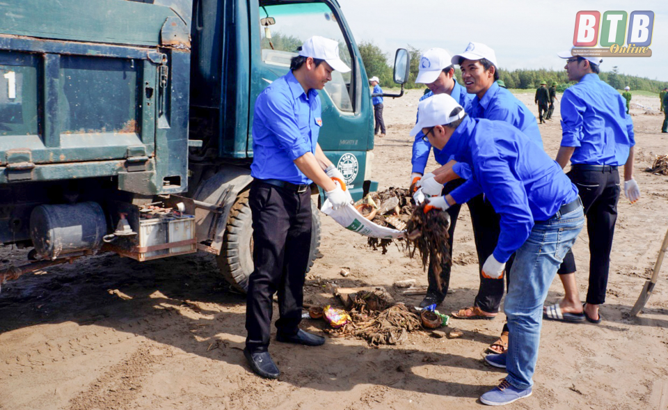 Đoàn Khối các cơ quan tỉnh Thái Bình tham gia chiến dịch hãy làm sạch biển. Ảnh: Xuân Phương
