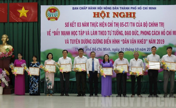 Ngày 10/10, Hội Nông dân TP. Hồ Chí Minh tổ chức sơ kết 3 năm thực hiện Chỉ thị số 05-CT/TW của Bộ Chính trị về đẩy mạnh học tập và làm theo tư tưởng, đạo đức, phong cách Hồ Chí Minh và tuyên dương điển hình “Dân vận khéo”, nhân kỷ niệm 89 năm Ngày thành lập Hội Nông dân Việt Nam (14/10/1930 - 14/10/2019); kỷ niệm 89 năm Ngày truyền thống công tác Dân vận của Đảng (15/10/1930 – 15/10/2019).